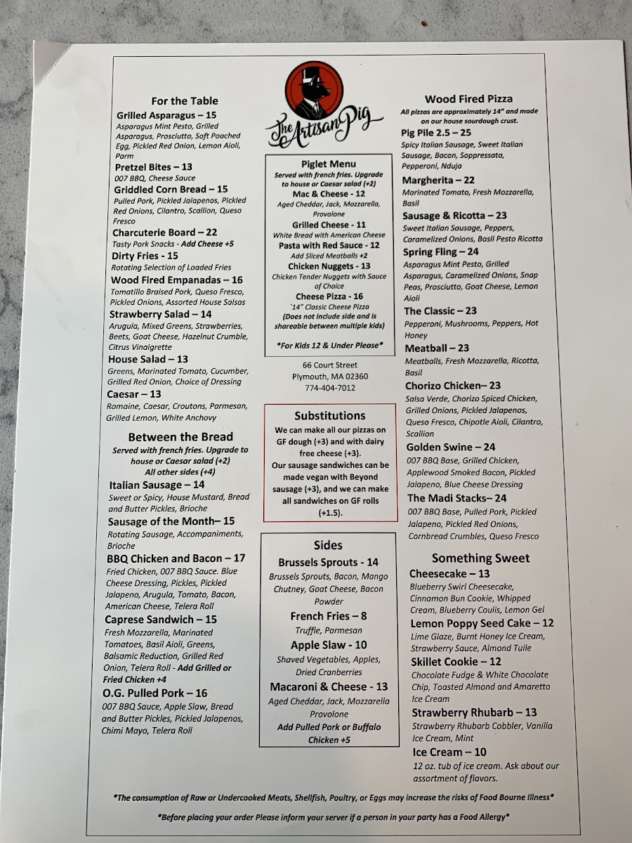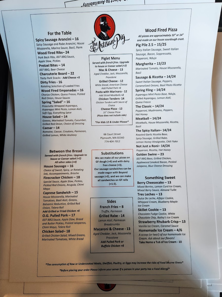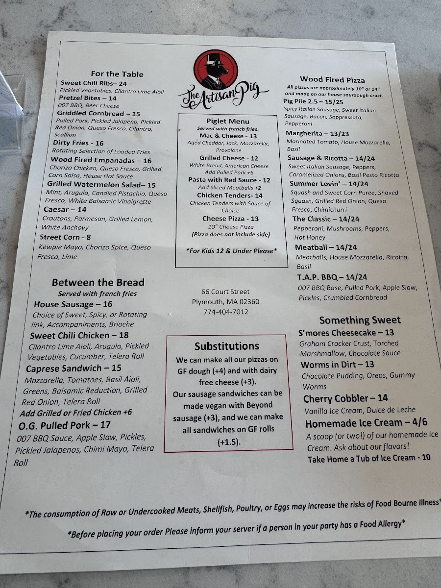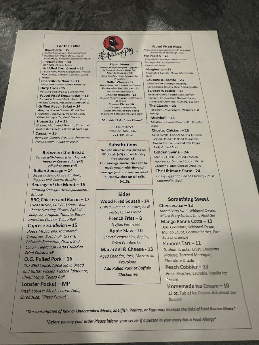 Overall, The Artisan Pig offers a diverse menu with something for everyone, whether you're in the mood for a pizza, a juicy burger, or a flavorful sandwich, complemented by tasty sides and desserts. It’s a great spot to gather with friends and family for a hearty, satisfying meal.