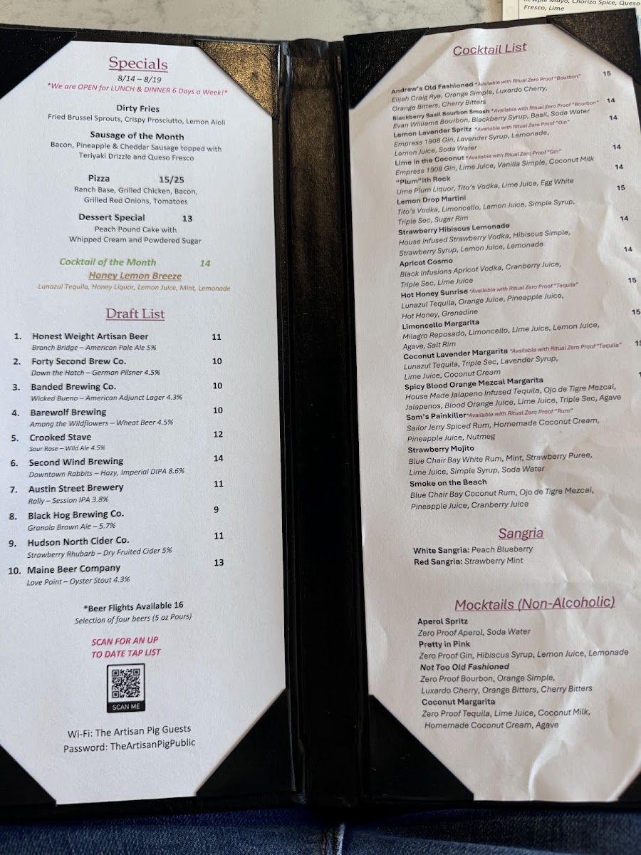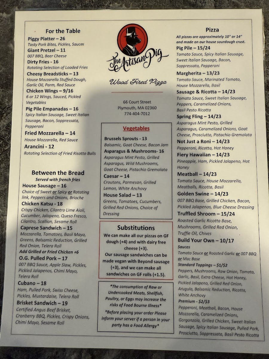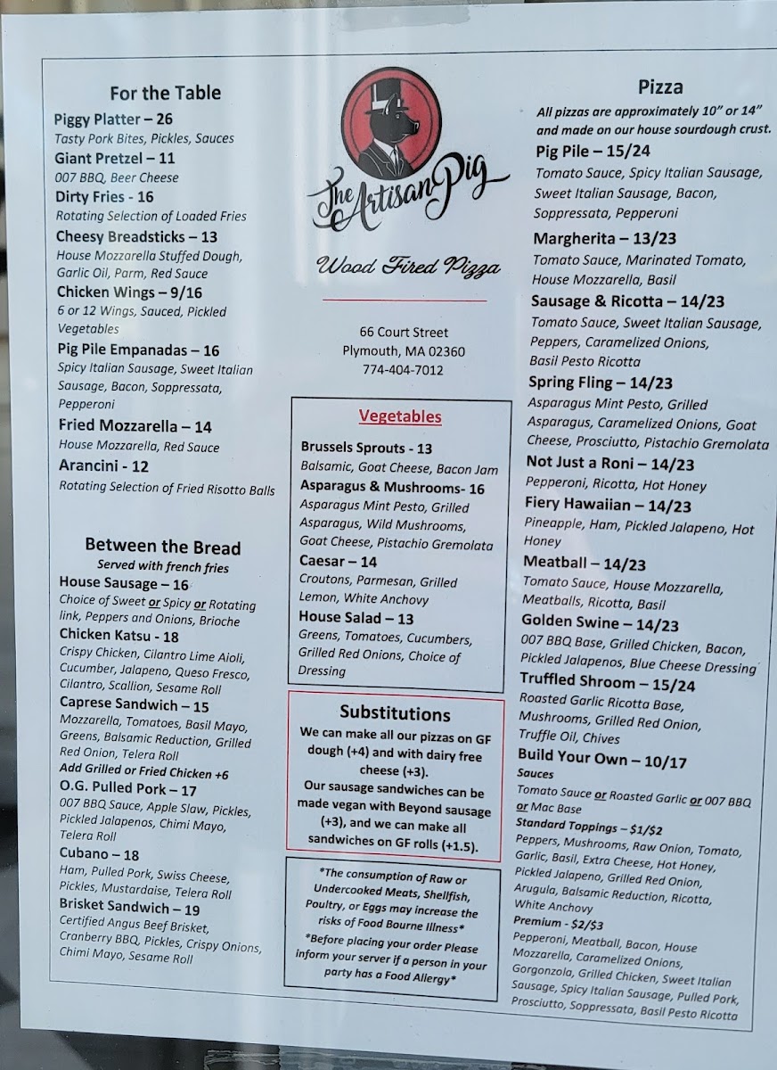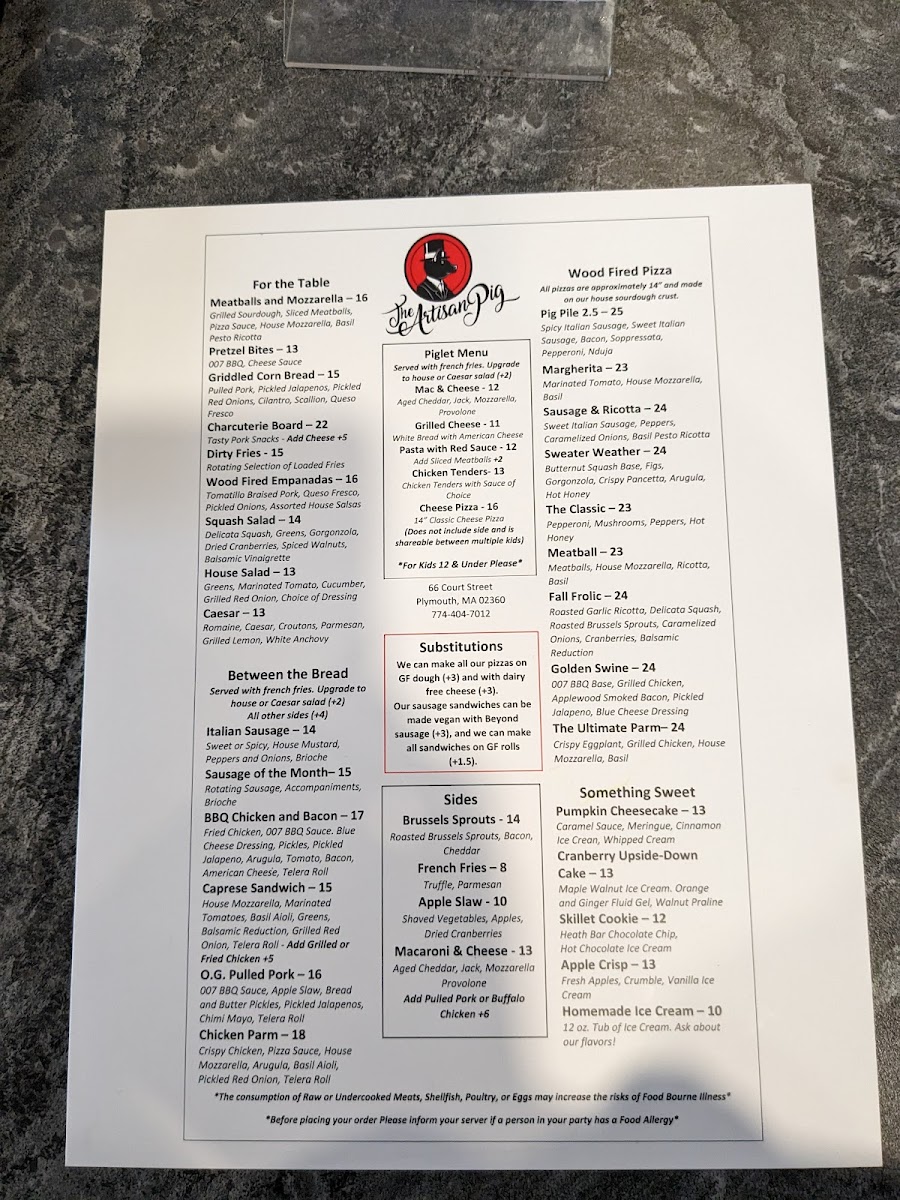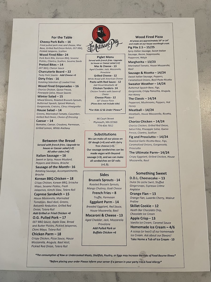Overall, The Artisan Pig offers a diverse menu with something for everyone, whether you're in the mood for a pizza, a juicy burger, or a flavorful sandwich, complemented by tasty sides and desserts. It’s a great spot to gather with friends and family for a hearty, satisfying meal.